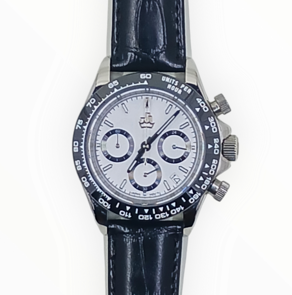 Elevate your style with our premium Model 14 chronograph watch. Crafted with a 40mm 316 steel case and sapphire crystal, this watch exudes elegance and durability. The unique meca-quartz movement offers the precision of a quartz watch with the smooth sweep of a mechanical one. Complete with a steel band, lumed hands, and homage design, this watch is a timeless accessory that will elevate any outfit.